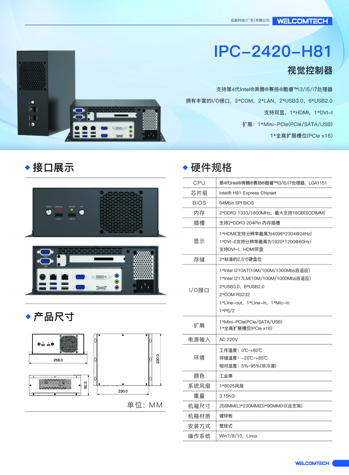 · 擴展:1*Mini-PCIe(PCIe/SATA/USB),1*全高擴展槽位(PCIe x16)