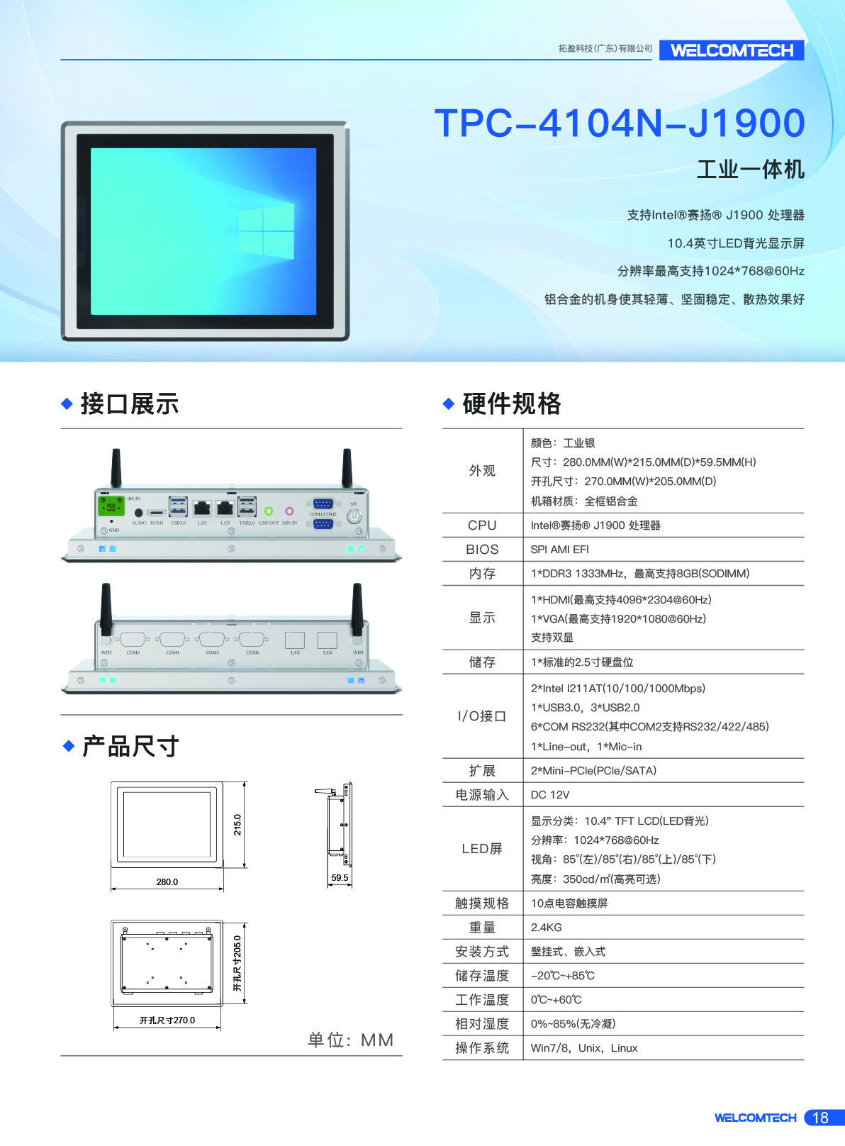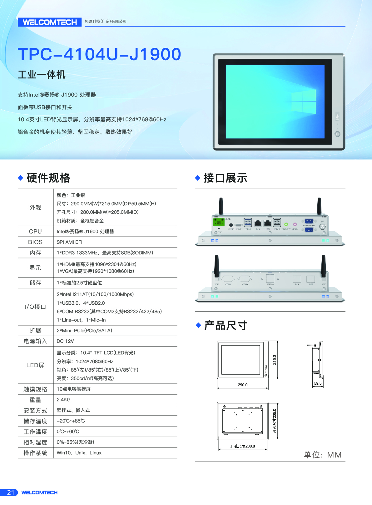 TPC-4104/J1900/10.4寸工業觸摸一體機