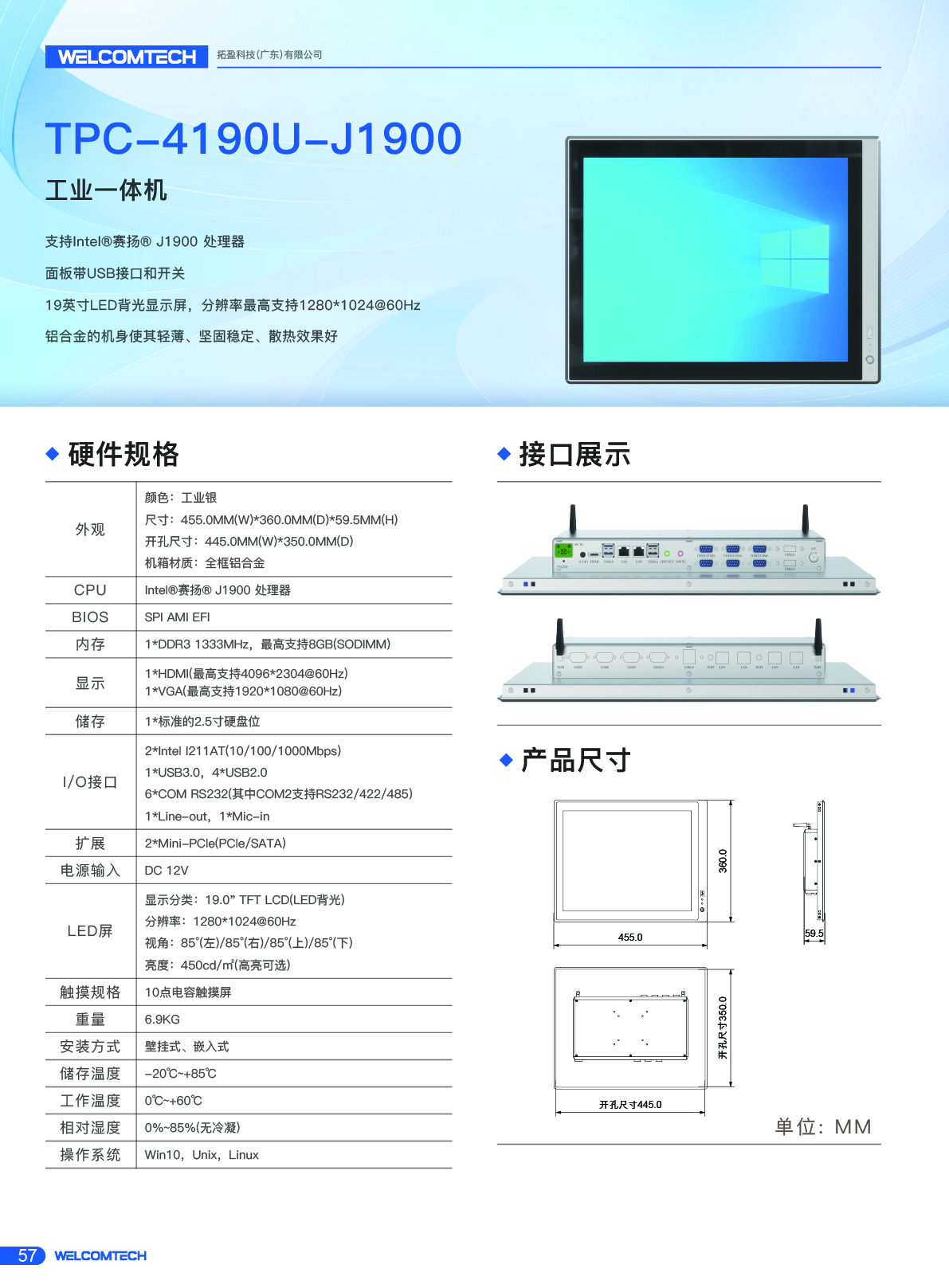 TPC-4190/J1900/19寸工業觸摸一體機