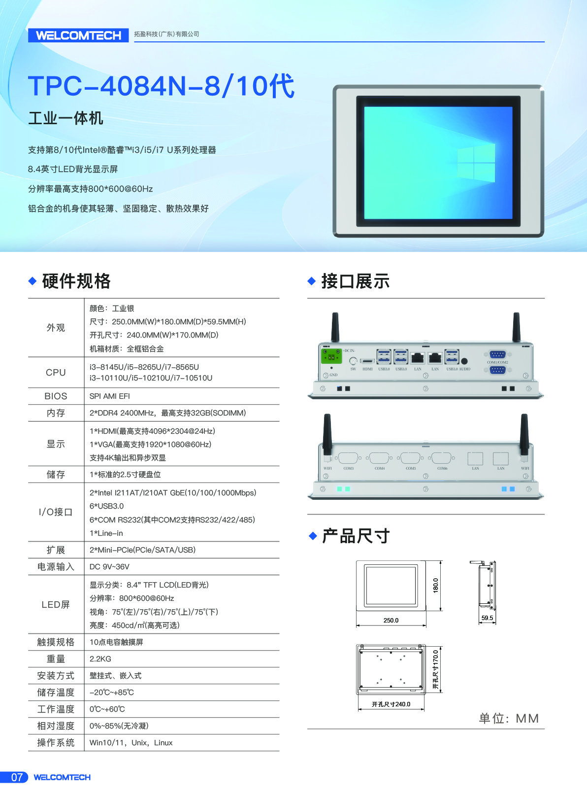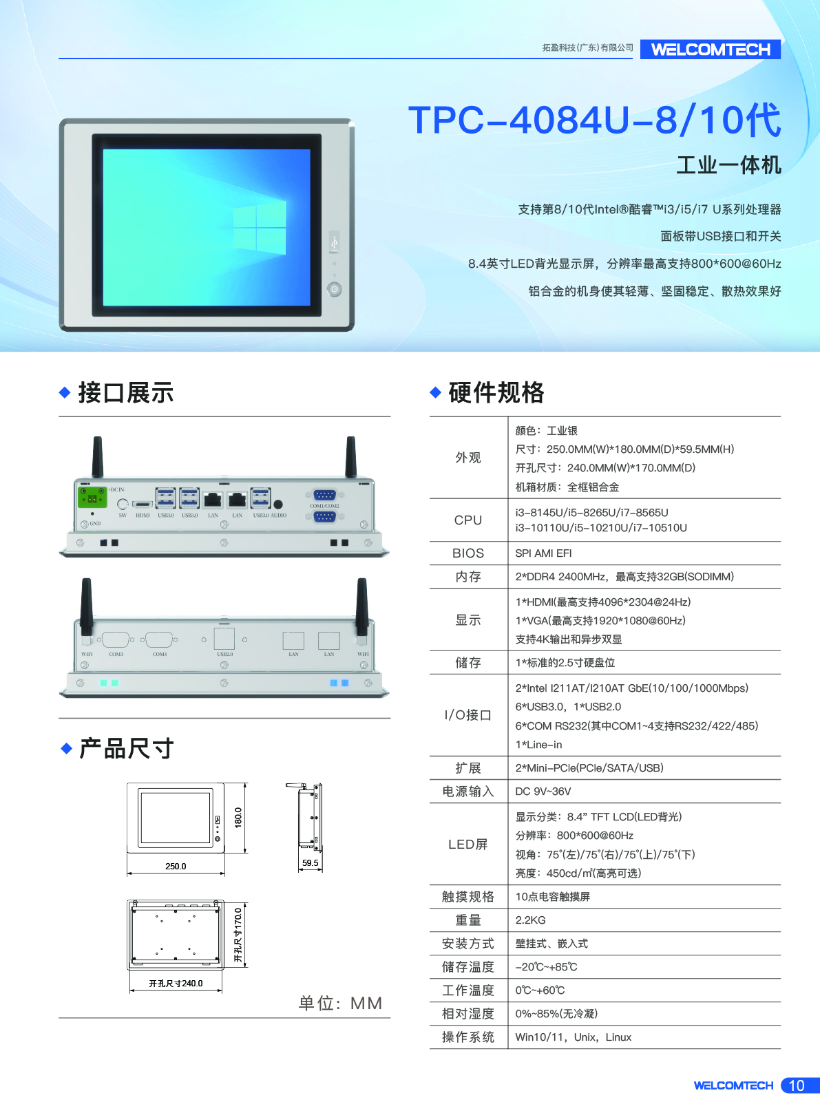 TPC-4084/酷睿8代/10代/8.4寸工業觸摸一體機