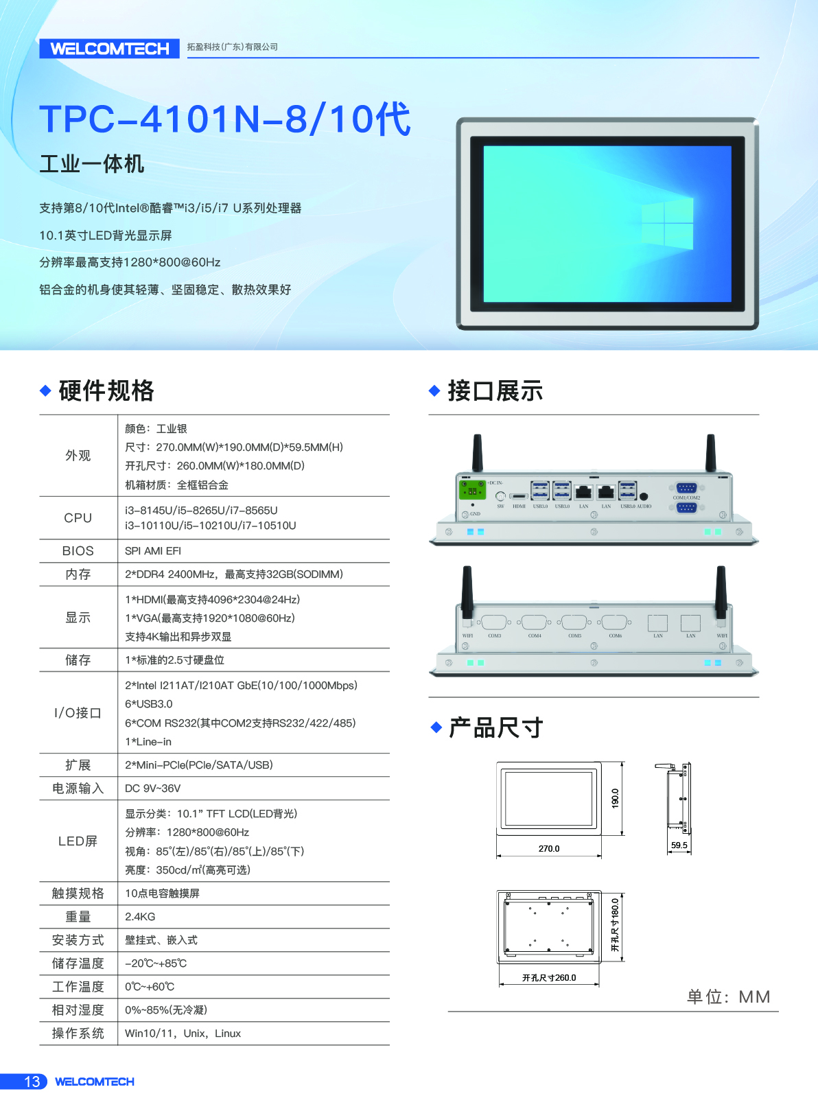 TPC-4101/酷睿8代/10代/10.1寸工業(yè)觸摸一體機(jī)