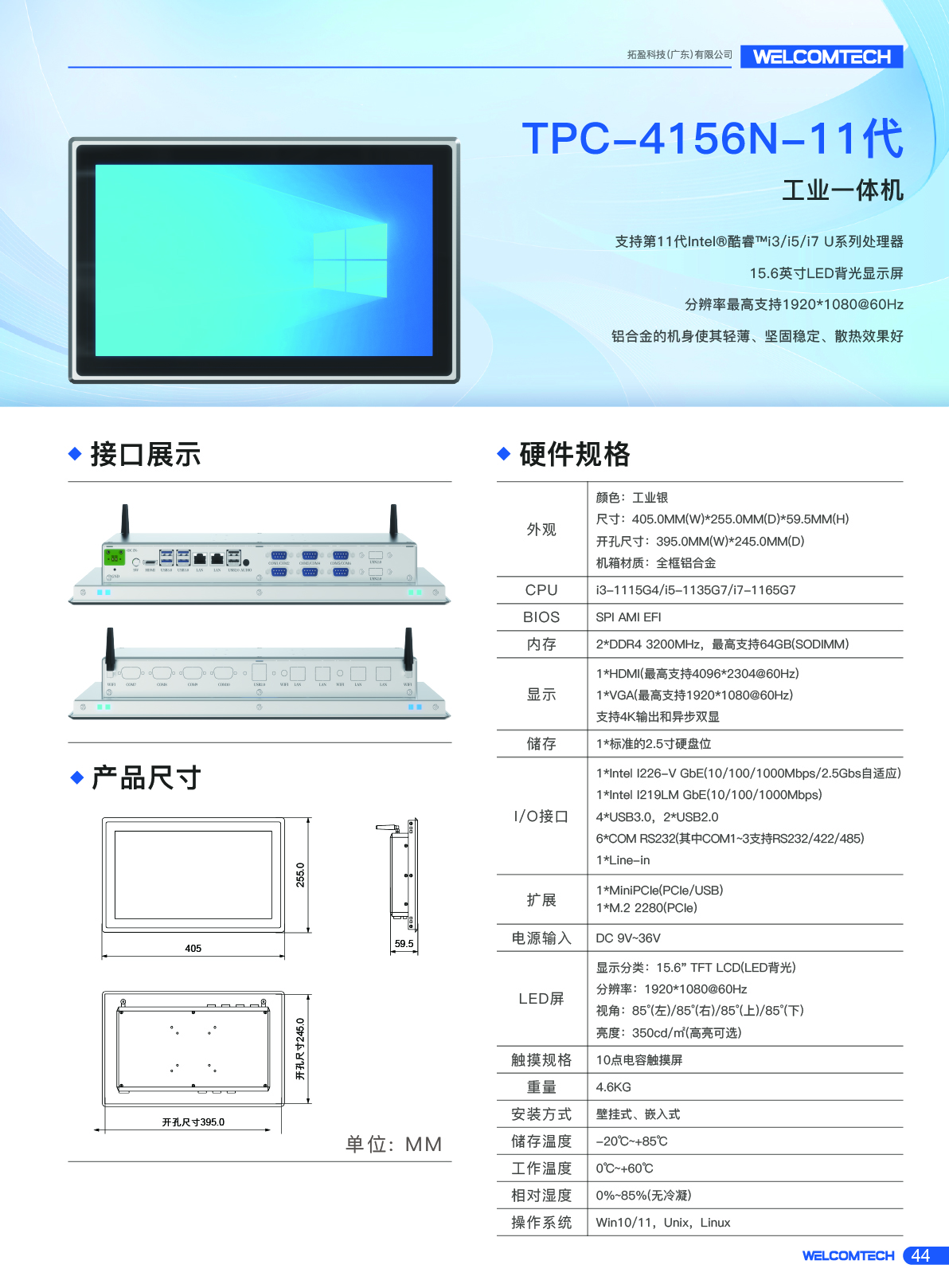 TPC-4156/酷睿11代/15.6寸工業觸摸一體機