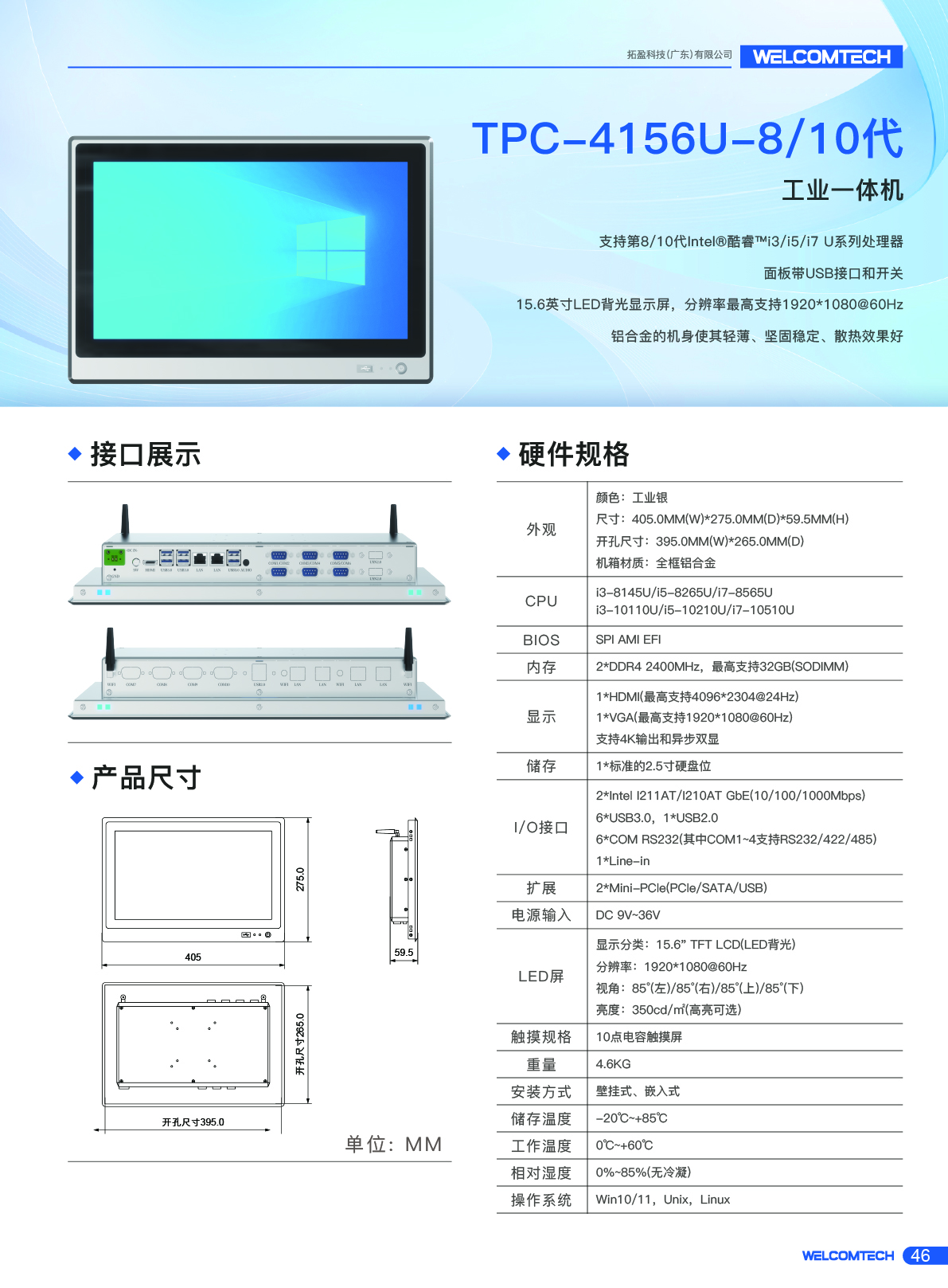 TPC-4156/酷睿8代/10代/15.6寸工業觸摸一體機