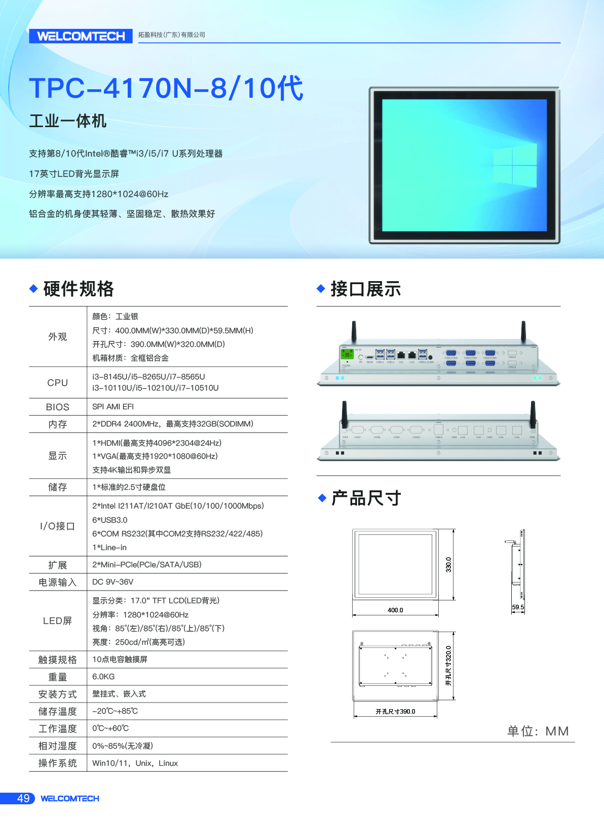 TPC-4170/酷睿8代/10代/17寸工業觸摸一體機