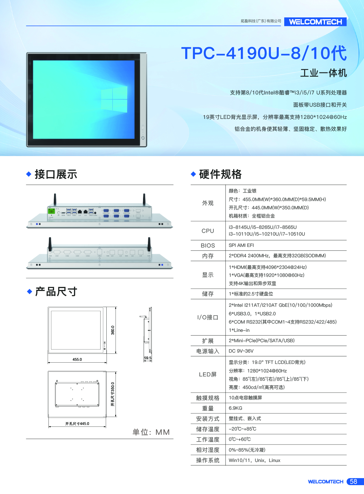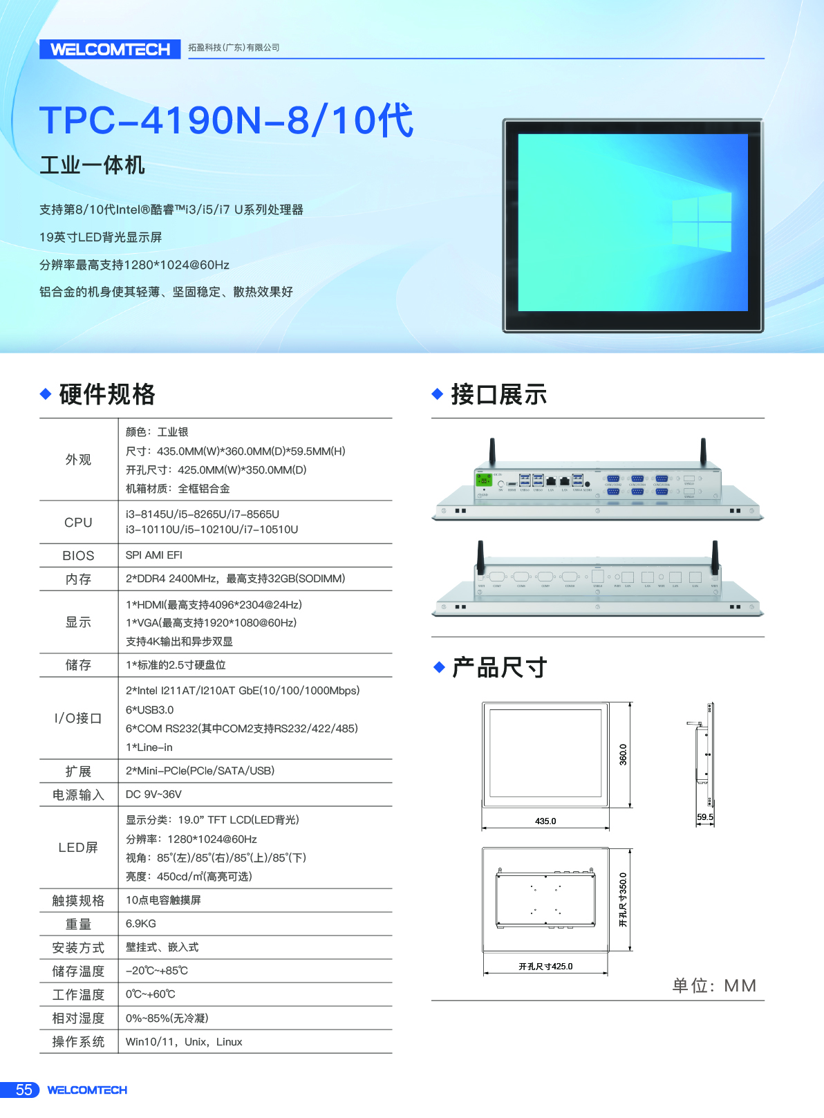 TPC-4190/酷睿8代/10代/19寸工業觸摸一體機