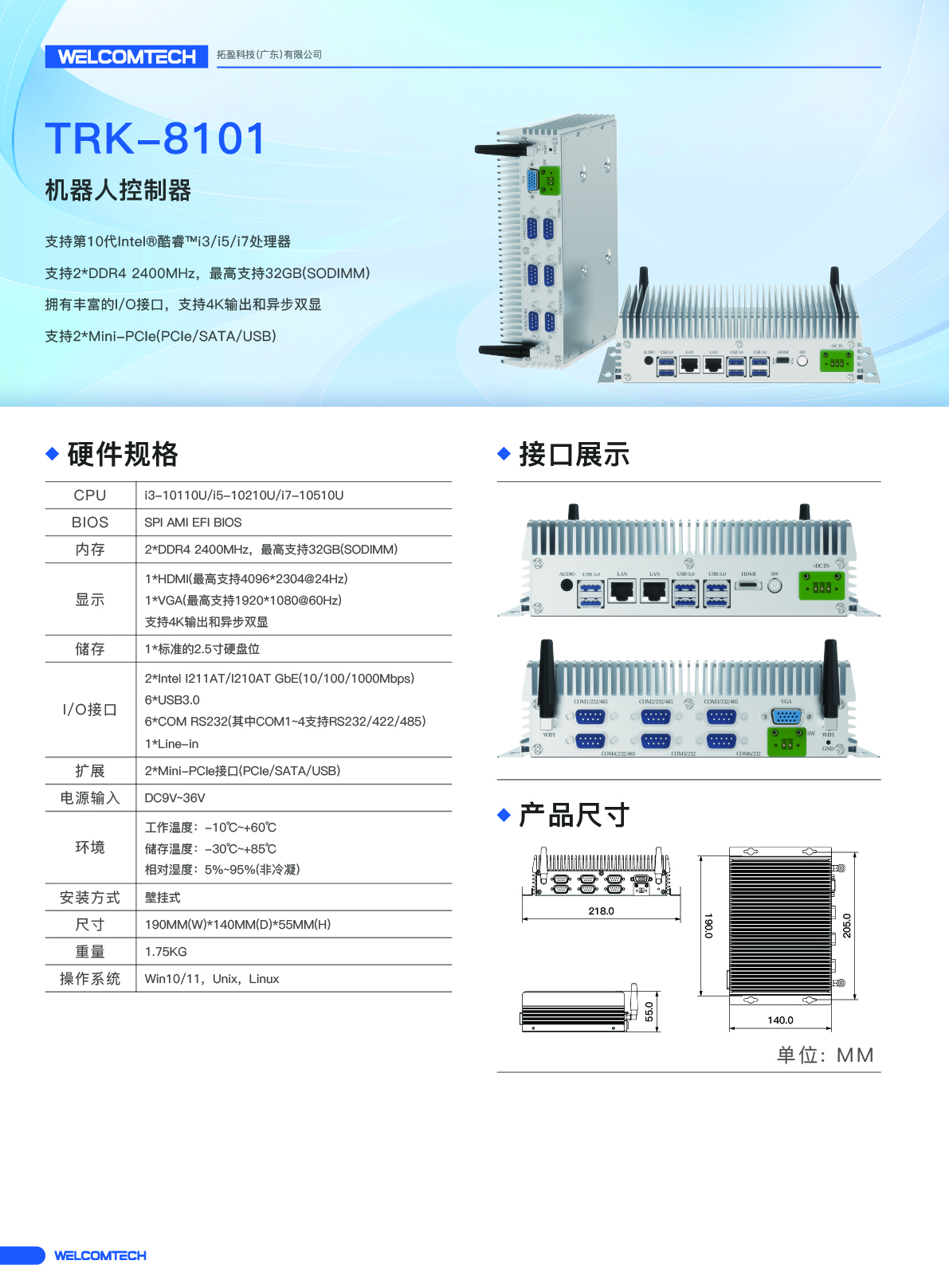 TRK-8101/10代2網6串口寬壓工控機