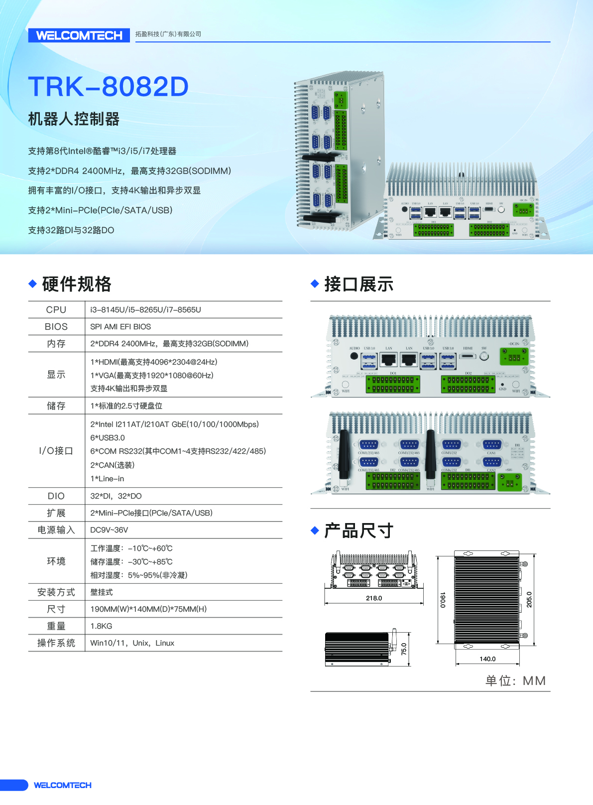 TRK-8082S/8代I3I5I7嵌入式無風扇工控機