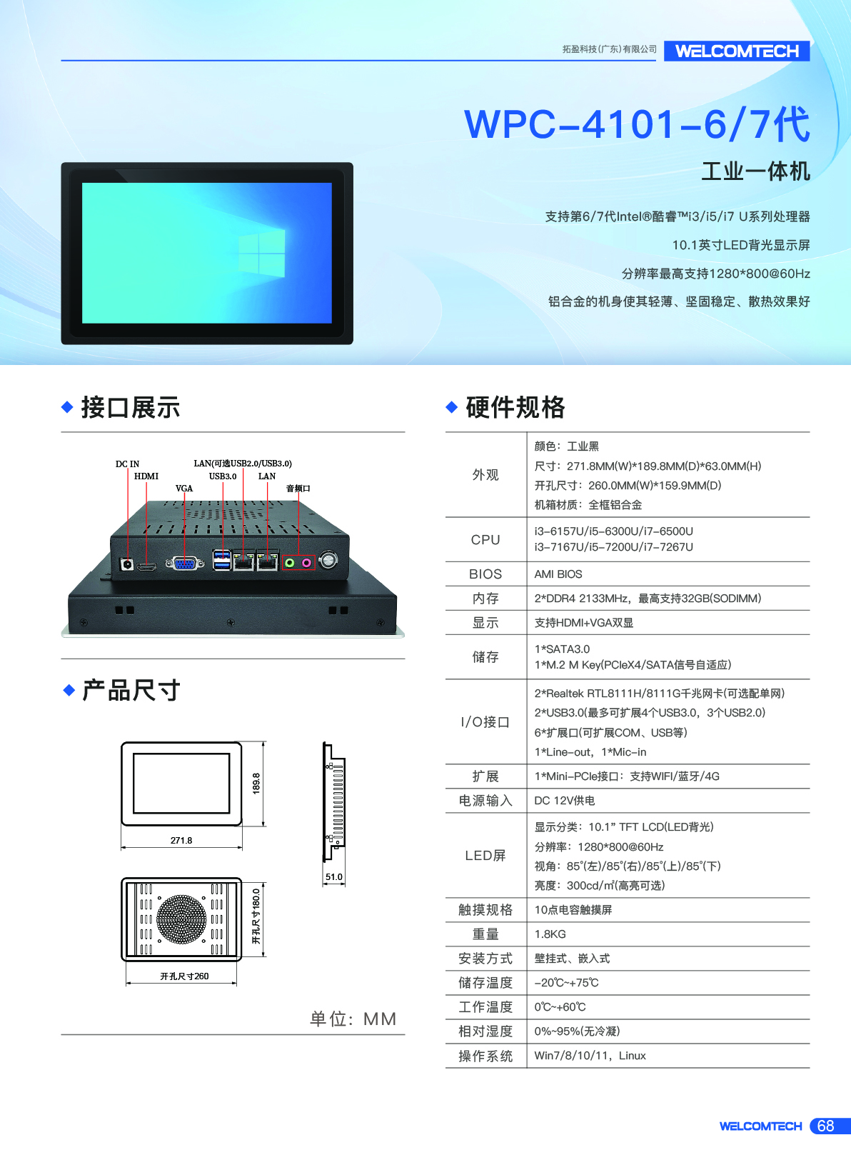 WPC-4101/6代/7代/10.1寸工業(yè)觸摸一體機(jī)