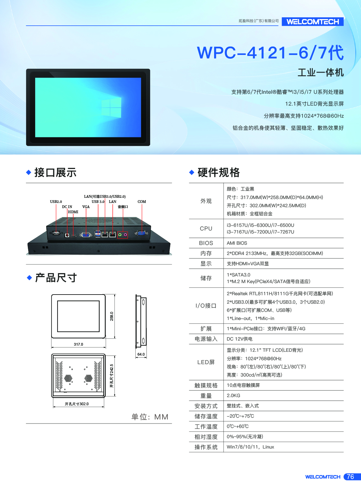 WPC-4121/6代/7代/12.1寸工業觸摸一體機