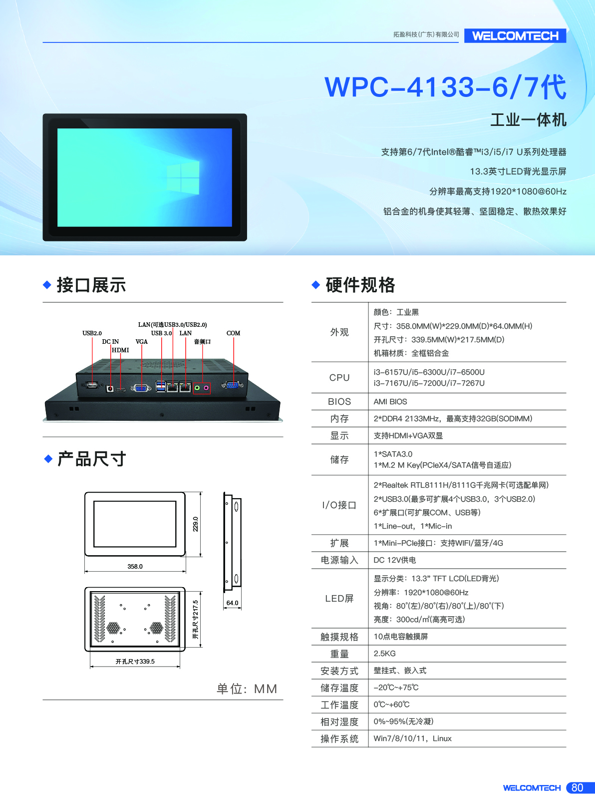 WPC-4133/8代/10代/13.3寸工業觸摸一體機
