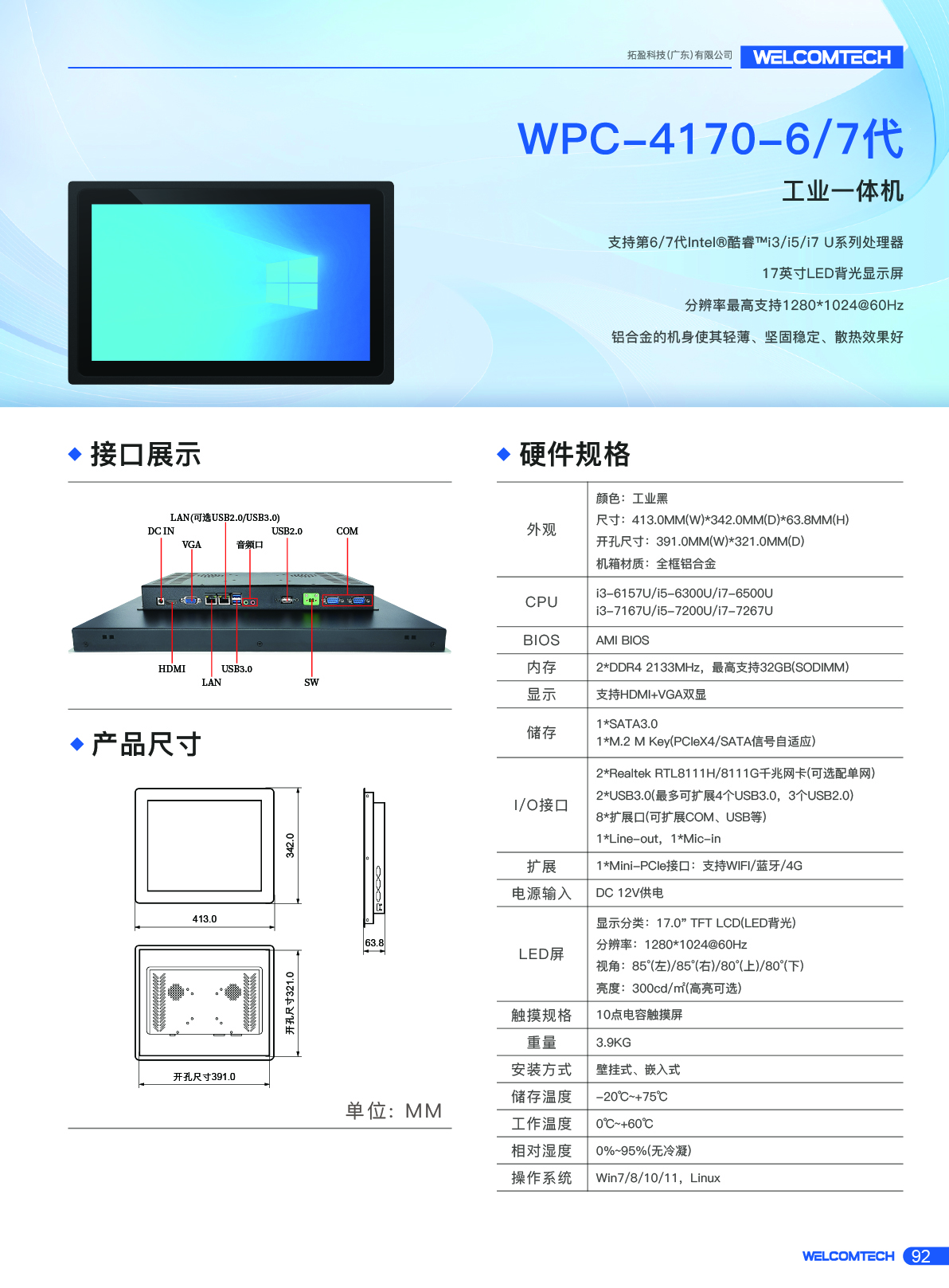 工業一體機WPC_4170_6代7代