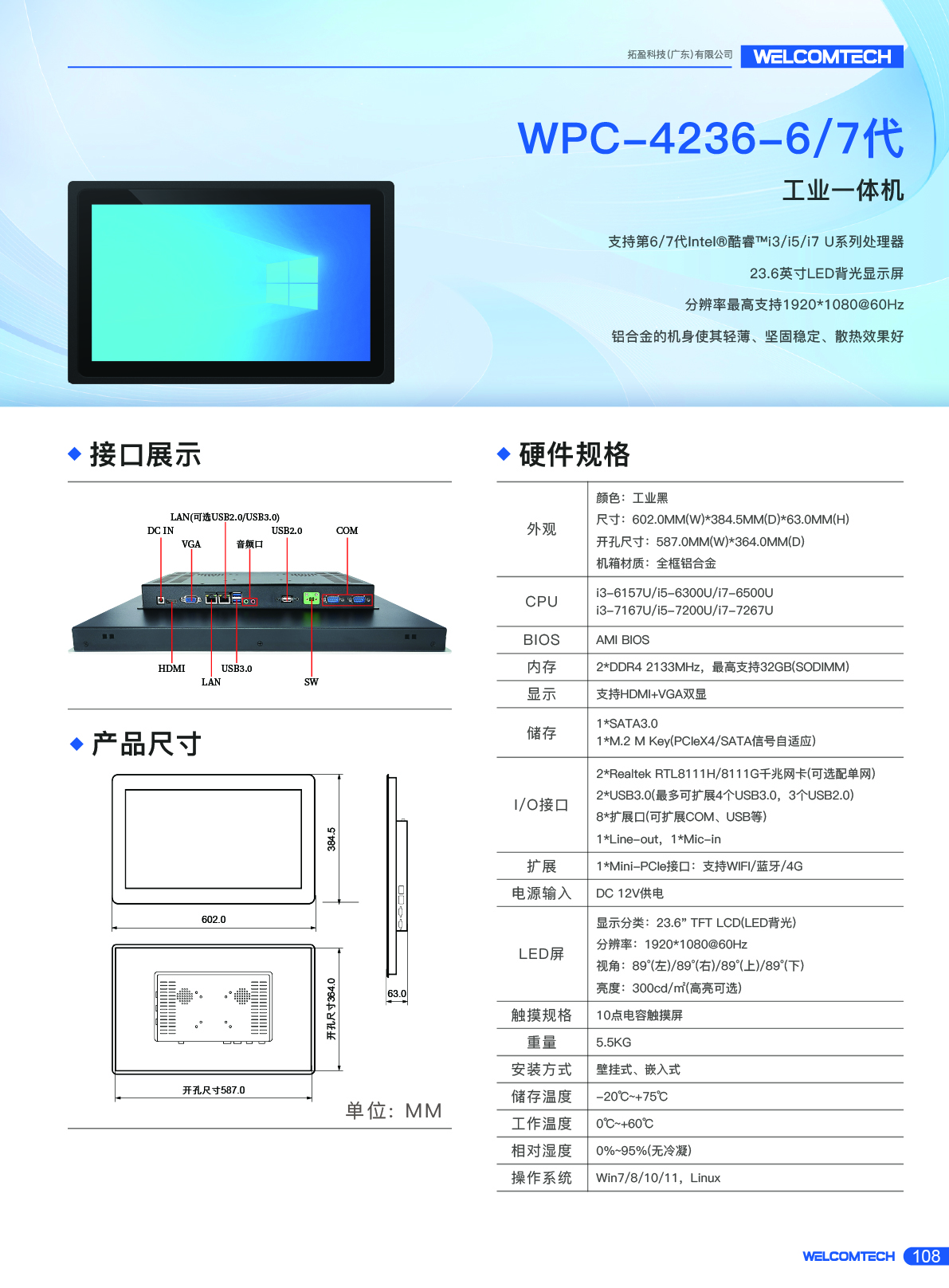 WPC-4236/6代/7代/23.6寸工業觸摸一體機