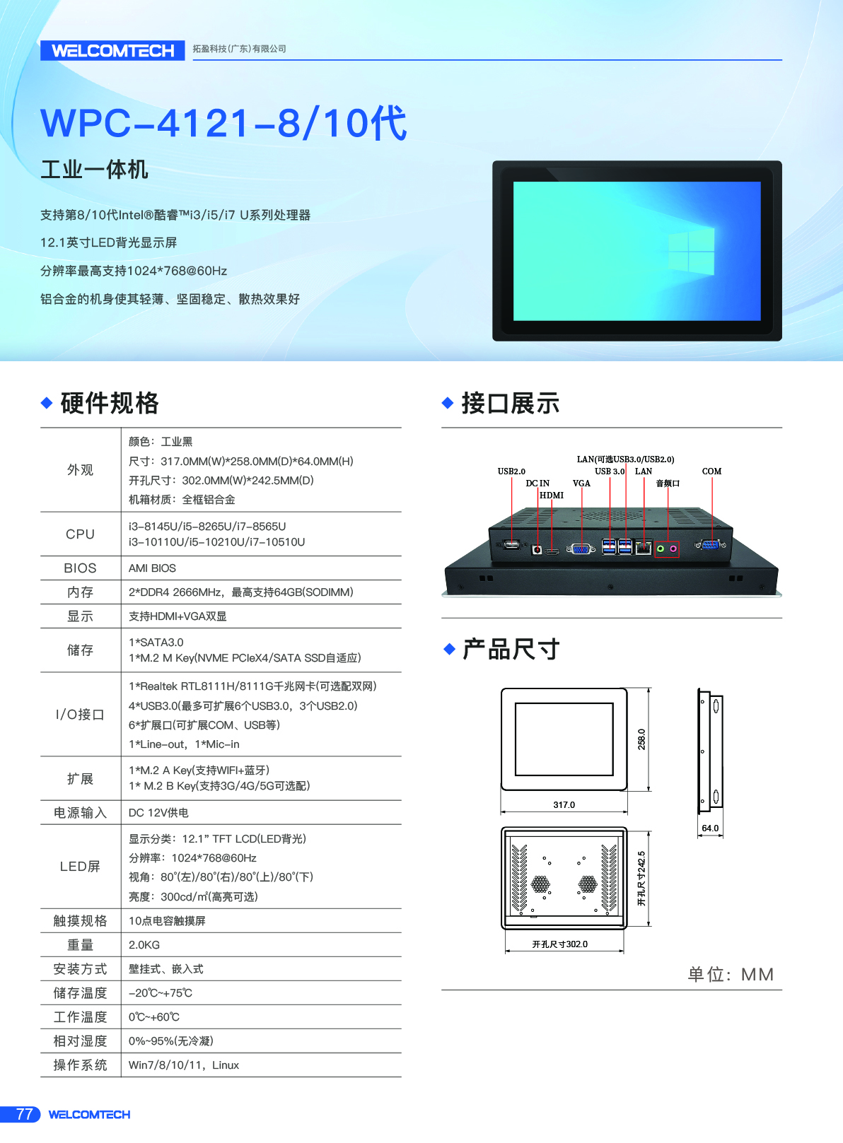 WPC-4121/8代/10代/12.1寸工業(yè)觸摸一體機(jī)